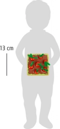 A termék robusztus fából készült, élénk színekben és biztonságos a gyerekek számára. Kompakt méretei (13x13x7 cm) ideálissá teszik a 3 éves korú gyermekek számára.