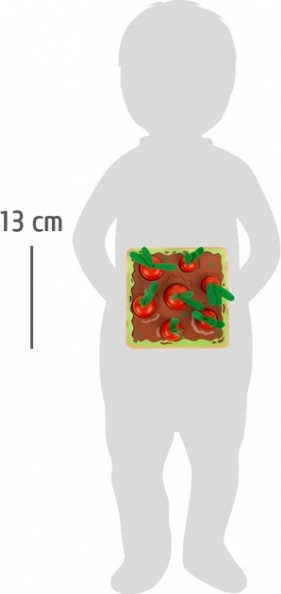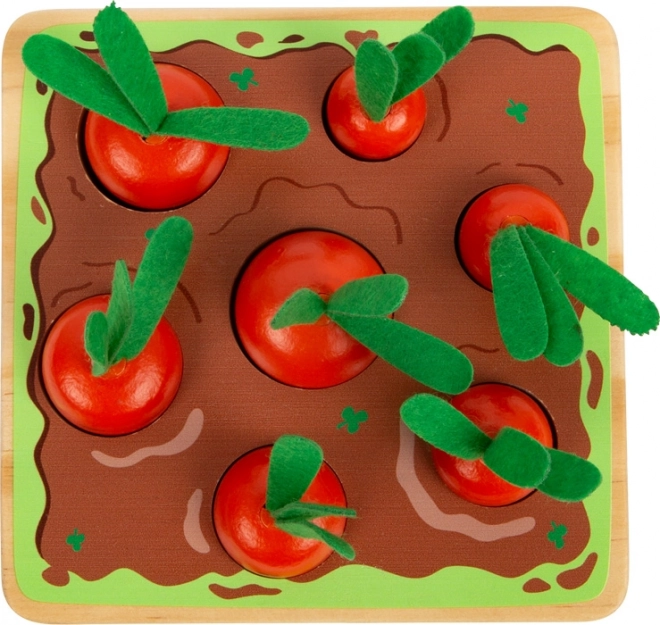 A Montessori módszer inspirációja lehetőséget ad a gyerekeknek, hogy szórakoztató formában tanuljanak. A beszúró és válogató játék hét különböző méretű sárgarépát sorozat formájában helyez el, melyeket a gyerekek összehasonlítással helyeznek a megfelelő lyukakba a táblán. Ez a játékszett segít a finommotorika fejlesztésében, a méretek észlelésében és a megfigyelőképesség javításában. Továbbá, a valósághű design zöld nemez részeivel a fiatal kertészek fantáziáját és szerepjátékait is ösztönzi.