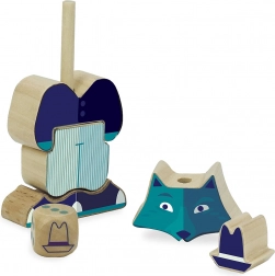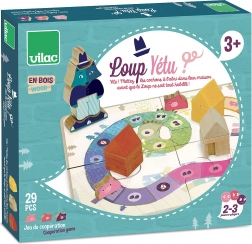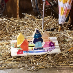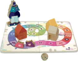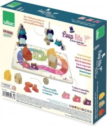 Masszív fa elemek és színes formák csábítanak a házikók építésére és a farkas kirakására. A gyerekek természetesen fejlesztik finommotorikájukat és fantáziájukat.