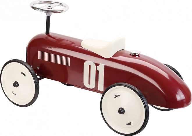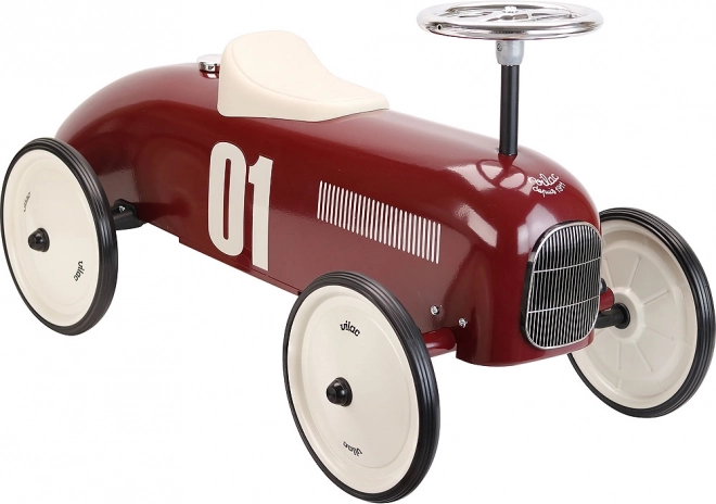 Fedezd fel a klasszikus versenyautók hangulatát a bordó metál színű futóbiciklivel, amely első pillantásra magára vonja a figyelmet. A robusztus fém test, a stabil futómű és a gondos kidolgozás teszi ideális választássá a gyerekek első vezetési élményeihez.