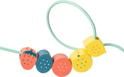 Színes, gyümölcs alakú gyöngyök a hajlékony vezetéken támogatják a finommotorikát és a mozgáskoordinációt a mindennapi játék során.