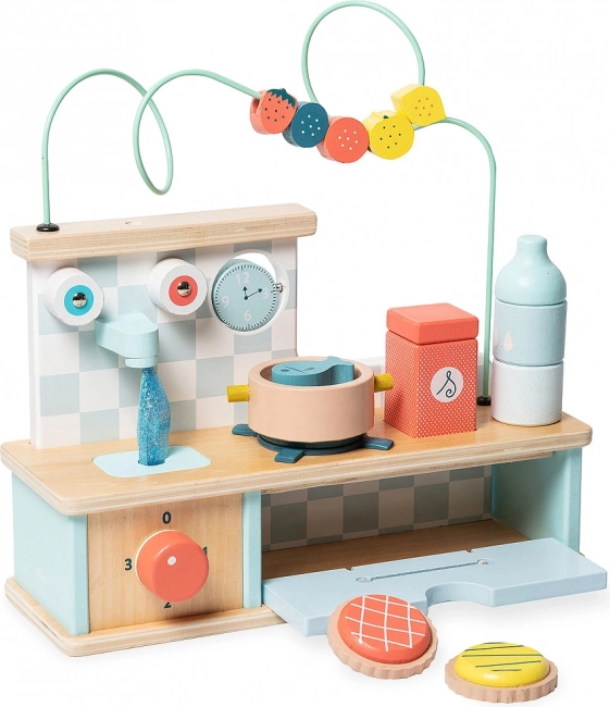 Forgatható gombok, halacskás lábas, csaptelepes mosogató és nyitható sütő serkentik a fantáziát, és megismertetik a gyerekeket a konyhai tevékenységekkel.