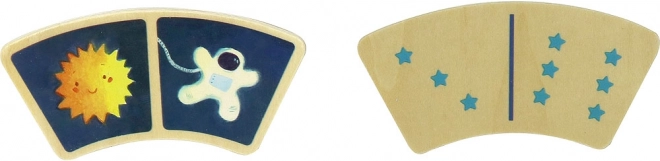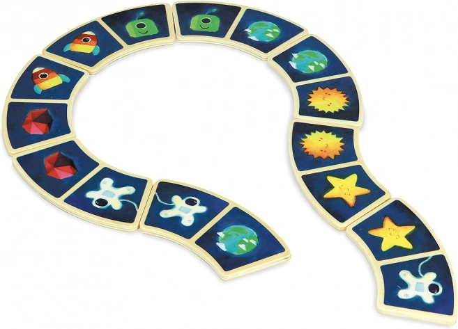 Unikális gyerek dominó űrbéli motívumokkal kreatív szórakozást nyújt kicsiknek és nagyoknak egyaránt. A készlet 28 fa darabot tartalmaz, amelyek a legkisebb gyerekek számára is megfelelőek, az íves formájuk miatt.