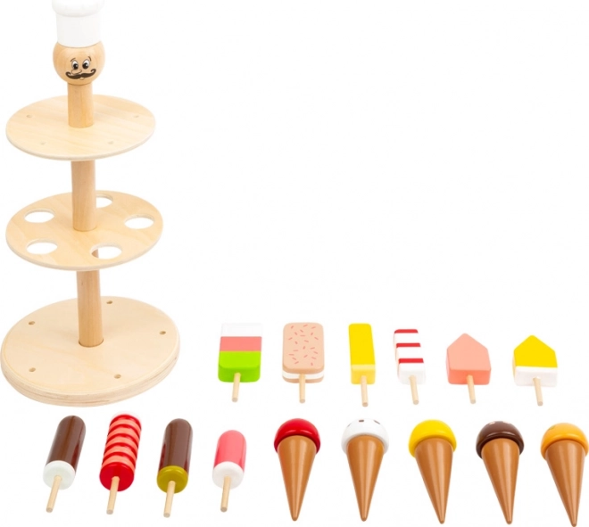 A fagyis eladós szerepjáték természetes módon fejleszti a szociális készségeket, a kommunikációt és a finommotorikát. A pult remek dísz a pultra vagy a polcra, és a gondos, tömörfa kivitelnek köszönhetően biztonságos és tartós.