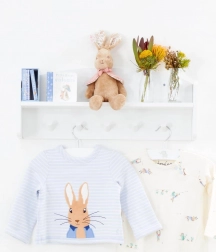 Plüss nyuszi Flopsy Bunny a legkiválóbb minőségű plüssből készült, szép mintákkal és 100%-os pamut anyagokkal díszítve. Ez a nyuszi a Peter Rabbit Signature Collection része, amely Beatrix Potter klasszikus gyermekmeséi iránti nosztalgiát ébreszt. Flopsy nyuszi ideális társ gyerekjátékhoz és esti odabújáshoz.