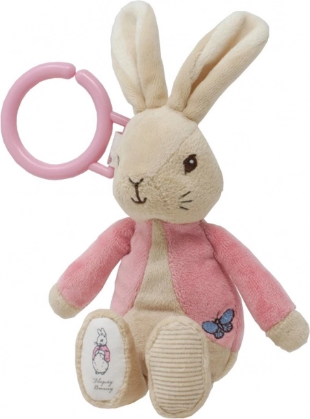 A rózsaszín műanyag gyűrű segítségével a Flopsy könnyen rögzíthető babakocsira, autósülésre vagy kiságyra.