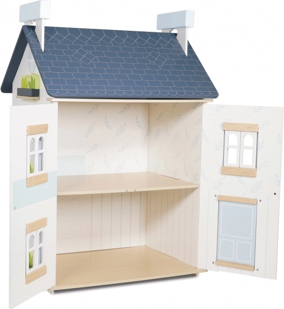 A Le Toy Van Sky babaház kiváló minőségű fából készült, különös figyelmet fordítva az etikus gyártási gyakorlatokra. Finom fehér és pasztellkék színnel festették, ami dekoratív elemmé teszi minden gyerekszobába. Nyitható ablakok és kétszintes kialakítás számtalan lehetőséget biztosít a képzeletbeli játékokhoz és a koordináció és finommotorikus készségek fejlesztéséhez.