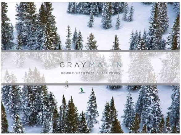 Élvezze a két lenyűgöző fotót egyben a GRAY MALIN 500 darabos, kétoldalas puzzle-jével. Az egyik oldalon téli táj fenyőkkel, a másikon színes síelők a havon várnak. A fényes és matt felületnek köszönhetően az oldalak könnyen megkülönböztethetők. A puzzle újrahasznosított papírból készül, nem mérgező festékekkel nyomtatva – ideális ajándék kirakó- és fotóművészet-rajongóknak.