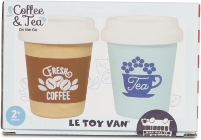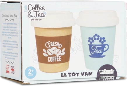 Stílusos, két darab kávé és tea elvitelre poharat tartalmazó gyerekszett a LE TOY VAN-tól a valósághű szerepjátékhoz. FSC faanyagból készült, műanyagmentes, és vízbázisú, nem mérgező festékkel van festve. Remek kiegészítő a gyerekkonyhába és a boltos szerepjátékhoz, támogatja a kreativitást és a szociális készségek fejlődését.
