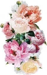 Gazdag pünkösdi rózsa kompozíció pasztell tónusokban, amely finom eleganciát és dekoratív megjelenést kölcsönöz a kész képképnek.