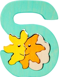 A napocskákkal díszített fa S betű kedves behelyezős puzzle, amelynek segítségével a gyerekek játékosan gyakorolják a formákat és megtanulják a betűket. Az egyes elemek könnyen a helyükre illeszkednek, ami ösztönzi az ismételt kirakást és fejleszti a szem–kéz koordinációt.