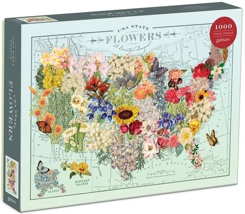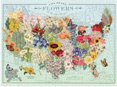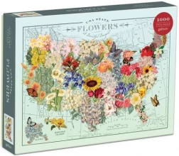 Élvezze a gyönyörű puzzle kirakását a népszerű művésznő, Wendy Gold illusztrációjával. Ez az 1000 darabos puzzle az USA egyes államainak virágait ábrázolja, és prémium minőségű, újrahasznosított papírból készült.