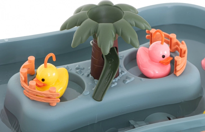 Bekapcsolás után a víz finoman hullámzik, a kacsák folyamatos mozgásban vannak. A gyerekek játék közben fejlesztik a koordinációt és a gyors észlelést.