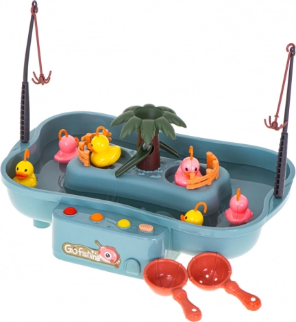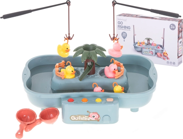 Fedezze fel a közkedvelt ügyességi játékot, amelyben a gyerekek a medencéből horgászbotokkal fogják ki a kacsákat. A rezgő alap finom hullámzást kelt, így a horgászat nem olyan egyszerű, és a gyerekek gyakorolják a finommotorikát, a szem–kéz koordinációt és a türelmet. A beépített gombok vidám dallamokat játszanak és fényhatásokat kapcsolnak, még több szórakozást biztosítva.