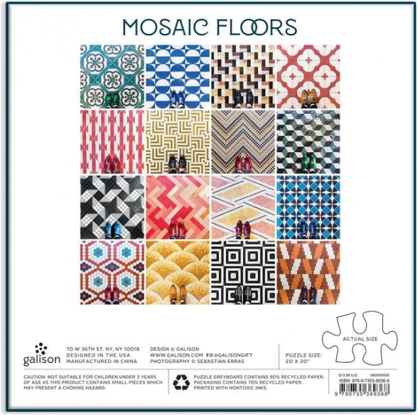 Élvezze a hosszú órákon át tartó szórakozást a GALISON design kirakóval, amelyet Sebastian Erras művész munkája inspirált. A mozaikos padlók kollázsa lenyűgözi a részletek és az esztétika kedvelőit, és stílusos ajándékként is örömöt okoz. A matt felületű, masszív doboz védi a tartalmat, és a polcon is remekül mutat.