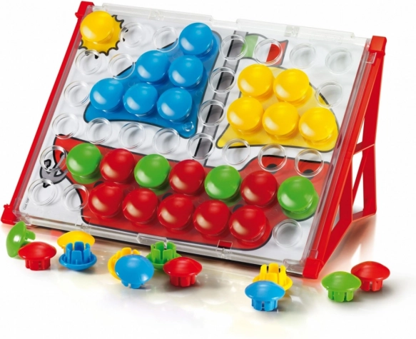 A Fantacolor Junior Basic ideális didaktikai játék óvodások számára. A gyerekek a nagy, színes gombokat a minták szerint vagy saját fantáziájuk alapján helyezik a lyukakba, miközben játékos formában gyakorolják a szem-kéz koordinációt, a színfelismerést és a logikus gondolkodást. A masszív kivitelezésnek és a biztonságos méreteknek köszönhetően a mozaik már 2 éves kortól ajánlott.