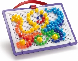 A népszerű Quercetti gyerekmozaik órákon át tartó értelmes szórakozást kínál. A különböző átmérőjű színes pöckök könnyen behelyezhetők a strapabíró perforált táblába, ami fejleszti a kéz–szem koordinációt, edzi a türelmet, és erősíti a színek és formák vizuális észlelését. Az okos koff ernek köszönhetően minden biztonságosan elpakolható és útra kész.