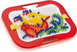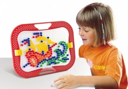 A mozaikok fejlesztik a gyerekek finommotorikáját, kreativitását és fantáziáját. A készlet egy hordtáskából, perforált játéktáblából és különböző színű, átmérőjű és formájú színes gombostűkből áll. Ezekkel a gombostűkkel, amelyeket a játéktábla nyílásaiba illesztenek, a gyerekek különféle képeket vagy mintákat alkothatnak. Játék után mindent el lehet pakolni a hordtáskába, amelynek fedele a biztosítózár rögzítése után magát a játéktáblát alkotja. Kiváló minőségű műanyagból készült. Főbb jellemzők: fejleszti a finommotorikát, a kreativitást és a fantáziát; 300 darab, 10 mm átmérőjű gomb; praktikus hordtáska a tároláshoz