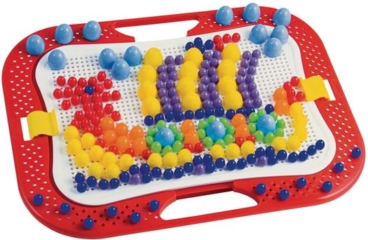 A mozaikjátékok fejlesztik a gyermekek finommotorikáját, kreativitását és fantáziáját. A készlet egy bőröndből, perforált játéktáblából és különböző színű, átmérőjű és formájú, színes fejrészű gombostűkből áll. Ezeket a tüskéket a játéktábla nyílásaiba illesztve a gyerekek különféle képeket vagy mintákat alkothatnak. Játék után mindent el lehet tenni a bőröndbe, amelynek fedele a biztosítózár rögzítése után maga a játéktáblaként szolgál. Prémium minőségű műanyagból készült. Főbb jellemzők: fejleszti a finommotorikát, a kreativitást és a fantáziát; 300 darab, 10, 15 és 20 mm átmérőjű gombot tartalmaz; praktikus tárolóbőrönd. Csomag méretei: 36×27,5×6 cm Méret a gomboknál: ⌀1; 1,5; 2 cm Ajánlott életkor: 3+ Anyag: műanyag