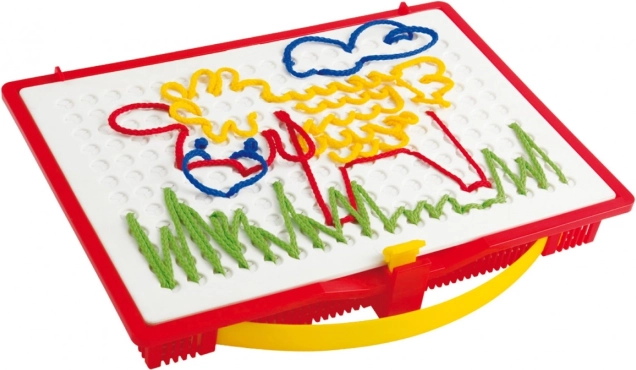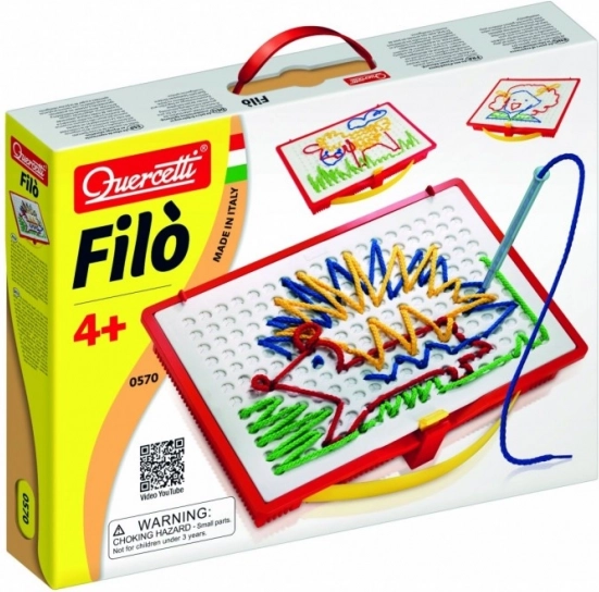 Fedezd fel a kreatív játék varázsát a Quercetti Filò hímző készlettel, amely támogatja a gyerekek fantáziáját és finommotoros készségeit. A speciális tollak segítségével a gyerekek különböző képeket hozhatnak létre, a színes zsinórokat a játéktábla nyílásaiba helyezve, ami örömöt és szórakozást nyújt számukra.