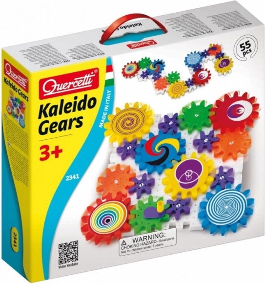Az Építőkészlet Quercetti Kaleido Gears perforált lemezekből, tengelyekből, fogaskerekekből és különböző állat- és fafigurákból áll. A mechanizmust egy kulccsal lehet mozgásba hozni, ami lehetővé teszi a gyerekek számára a alapvető mechanikai elvek felfedezését és a ok-okozati összefüggések megértését.