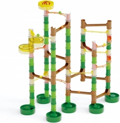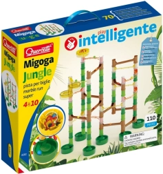 A Migoga Jungle golyópálya 4 éves kortól kínál szórakoztató tanulást. A színes golyók egyszerre indulnak, majd különböző, hidakkal, spirálokkal és csúszdákkal teli, dzsungel ihlette útvonalakon haladnak. A gyerekek építhetnek az útmutatók szerint, vagy teljesen egyedi konstrukciókat alkothatnak.