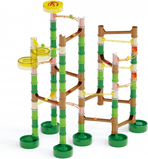 Különféle csúszdák, hidak, oszlopok és spirálok segítségével építhetsz útmutató szerint vagy alkothatsz teljesen egyedi pályákat.