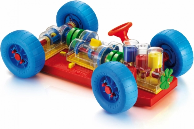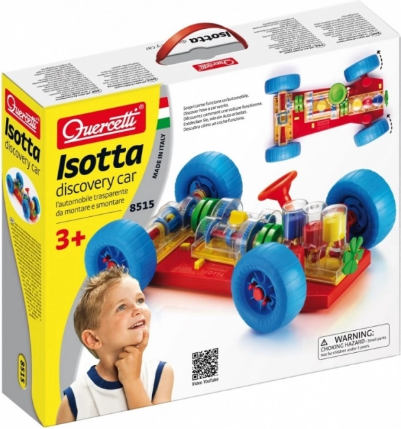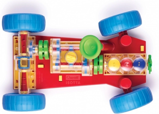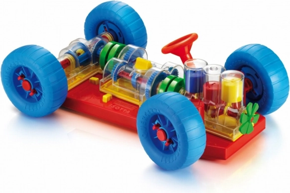 Ravasz játék, amely egyenesen arra ösztönzi a gyerekeket és szüleiket, hogy kiderítsék, hogyan működik egy igazi autó. Minden alapvető mechanikai funkció pontosan vissza van adva. A motornál a gyerekek láthatják, hogyan működnek a hengerek és a főtengely, és hogyan kapcsolódnak a sebességváltóhoz, amely működő, 3 állású váltóval rendelkezik (üres, 1. és 2. fokozat). A differenciál a mozgást a hátsó kerekekre viszi át, és lehetővé teszi, hogy egymástól függetlenül forogjanak. Minden mechanikus alkatrész könnyen csatlakoztatható az alvázhoz, és ugyanígy ki is oldható a speciális rugós sárga gombokkal. A kormány működik, és lehetővé teszi az autó kanyarodását vagy beállását a parkolóba. A gyerekek az autót elöl és hátul is felemelhetik speciális emelő kocsikkal, és az elsőn lévő kurbli tekerésével az egész mechanizmust mozgásba hozhatják. A különböző sebességfokozatok kapcsolásakor láthatják, hogyan változik a kerekek és hengerek mozgási sebessége. Üresbe kapcsolva azt is észreveszik, hogyan válik szét a motor és a differenciálmű. 3 éves kortól ajánlott. Főbb jellemzők: az alapvető mechanikai funkciók reprodukálva, működő kormány és mechanikus alkatrészek, 3 éves kortól.