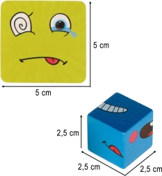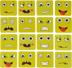 Ez a lebilincselő játék egyszerű elven működik, mégis rengeteg szórakozást nyújt: húzzon egy kártyát arckifejezéssel, és a lehető leggyorsabban rakja ki az arcot a kockákból azonos színben. Az nyer, aki elsőként rak ki 10 kifejezést. A játék kiváló eszköz az érzelmek tanulásához – öröm, szomorúság vagy harag – és támogatja az érzésekről való nyílt kommunikációt.