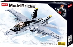 Ez a realisztikus F/A–18 Super Bumblebee vadászgép építőkészlet a SLUBAN ModelBricks sorozatból részletes sugárhajtású gépet kínál kidolgozott pilótafülkével, szárnyfegyverzettel és kísérő motorkerékpárral minifigurával. A kiváló minőségű ABS műanyagból készült, masszív felépítésnek köszönhetően a modell játékra és kiállításra is ideális.