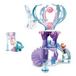 Az építőkészlet gyönyörű lila-kék tornyot tartalmaz működő funkciókkal, mint például csúszda és lépcső.
