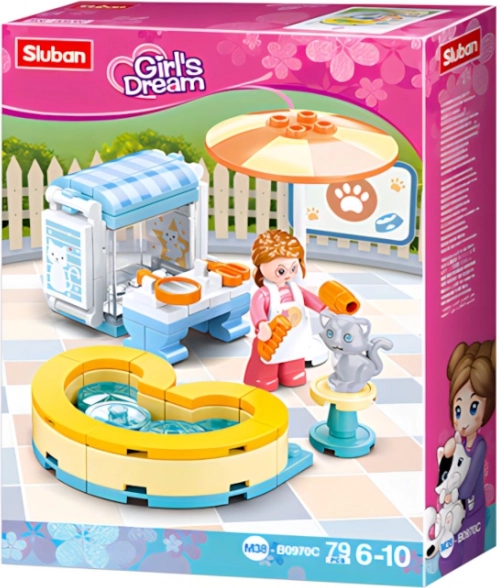 Élvezd a kreatív szórakozást a Sluban Girls Dream Cicás szalon építőkészlettel. A szett 82 elemet és 1 figurát tartalmaz, forgatható és billenthető részekkel a valósághű játékért. Minőségi, biztonságos ABS műanyagból készült, teljes mértékben kompatibilis a LEGO, COBI és Mega Bloks készletekkel. Ideális 6 éves kortól, közepes nehézségű építéssel.