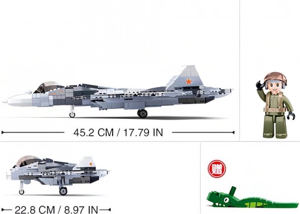 Építsd meg a modern orosz SU-57 sugárhajtású vadászgépet 2 az 1-ben kivitelben a Sluban Model Bricks készletével. A szett 893 elemet, 1 figurát és közepes nehézségi szintet kínál a remek építési élményhez. A tartós ABS műanyagból készült elemek kompatibilisek a LEGO, Cobi és Mega Bloks készletekkel, az innovatív figurák forgatható és billenthető részekkel rendelkeznek a jobb játszhatóságért.