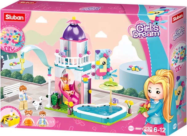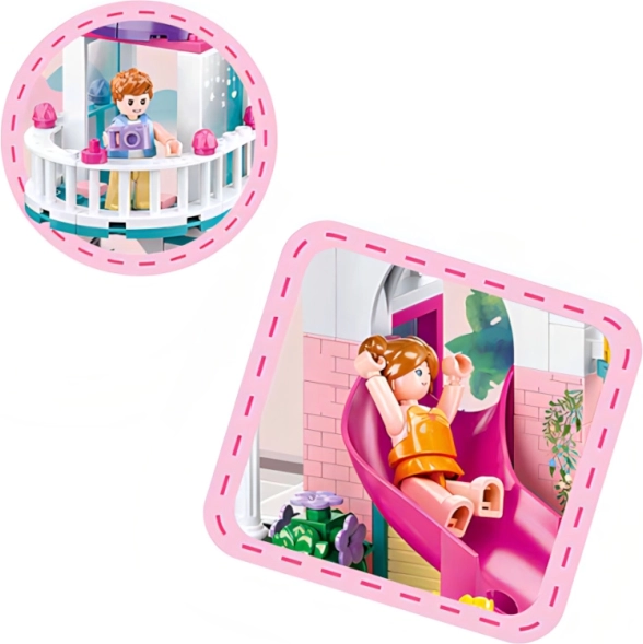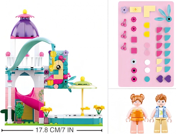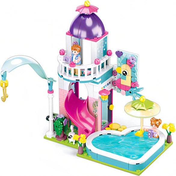 Sluban házikó medencés csúszdával egy szórakoztató és kreatív építőkészlet, amely könnyen kombinálható más készletekkel. Remekül fejleszti a gyerekek fantáziáját és finommotorikáját.