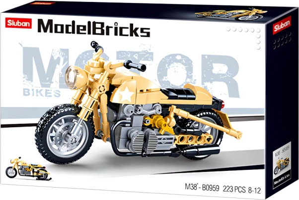 Sluban motor modell a ModelBricks sorozatból, tökéletes választás a kis építőknek! 223 darabból áll, ami lehetővé teszi egy valósághű motorbicikli modell összeállítását, kompatibilis más ismert építőkészletekkel. Ez az interaktív építési élmény 8 év feletti gyermekek számára készült.