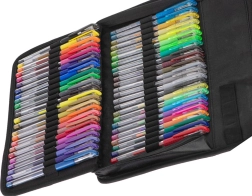 A nagy zseléstoll-készlet végtelen alkotási lehetőségeket kínál. A élénk, tartós színeknek köszönhetően jegyzetei és illusztrációi mindig látványosak és tiszták lesznek. A jól rendszerezett textil cipzáras tok mindent átláthatóan tart otthon, az iskolában és utazáskor is.