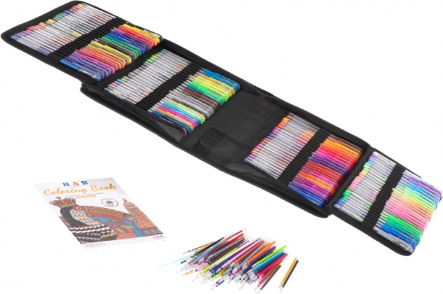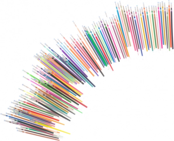 A csomagban fluoreszkáló, metál, csillámos és ombre zseléstollak keveréke található. Ha a kedvenc szín kifogy, elég kicserélni a töltőt – a szettben 120 db van, így az alkotás sosem áll meg. Tartalmaz továbbá egy színező füzetet 16 képpel gyerekeknek és felnőtteknek, ideális a finommotorika fejlesztésére és stresszoldó relaxációra.