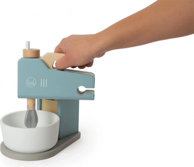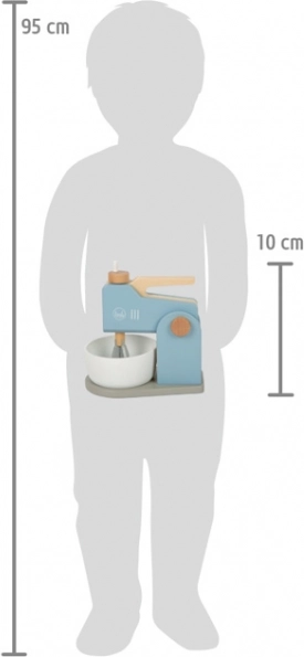 A stílusos, fa SMALL FOOT Tasty konyhai robotgép gazdag tartozékaival minden kis péknek örömet szerez. Tartalmaz egy kézzel levehető 2 az 1-ben mixert, forgó habverőket, tálat és kiegészítőket, többek között tépőzáras tojást, vajat, textil kekszeket és egy nyújtófát. A készlet része továbbá egy „sütőkeveréket” tartalmazó doboz képes recepttel. A minőségi faborítás füstkék és fehér színben, természetes részletekkel segíti a gyerekek képzeletének, finommotorikájának és szociális készségeinek fejlesztését.