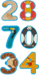 Színes betűk és számjegyek állatokkal, amelyek motiválják a gyerekeket az első szavak kirakására és a számolásra egyenesen a kádban.