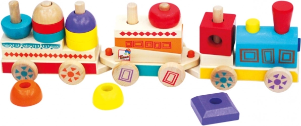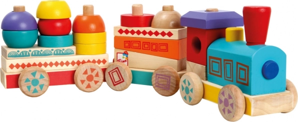 A színes, „MAXI” méretű fa vonat egyszerre húzható játék és építőkészlet. A különböző alakú kockákból álló vagonok összeállításával a legkisebbek fejleszthetik fantáziájukat és finommotoros készségeiket. Tartós, tömör fából készült. Főbb jellemzők: 3 alváz és 18 különböző kocka, MAXI méret, tartós fa kivitel