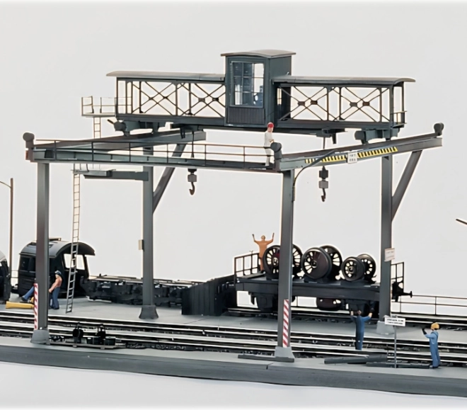 A PIKO Authentic Edition sorozat hídszerkezetű daruja a mozdonybontó telep makettkészleteinek része, de másutt is felhasználható, például átrakóállomásként vagy egyéb ipari beépítés részeként. Tagolt felépítése és a sok apró részlet elsősorban a tapasztaltabb modellezőknek szól. A daru tágas platformja könnyen és praktikusan hasznosítható a közvetlen környezet kidolgozásánál. A képen látható egyéb tárgyak (autók, figurák stb.) nem részei a csomagnak. A PIKO műanyag miniatűrjei kiválóan alkalmazhatók valósághű vágányhálózatok és diorámák tervezésekor. Kidolgozott színviláguk – ebben a sorozatban patinázással kiegészítve – a lehető legnagyobb hűséggel utánozza az előképeket, amelyet egyes esetekben a mellékelt matricákkal tovább lehet egyénileg fokozni. A részletes és pontos műanyag öntvények elemei finoman illeszkednek egymáshoz, és a minden készlethez mellékelt részletes útmutató révén az összeépítés egyszerű, így értékes idejét a táj és a jelenet egyedi megkomponálására fordíthatja. A modellekhez kínált tartozékok között változatos kiegészítőket, fogyóanyagokat, valamint vágánytervezési útmutatókat és hasznos tanácsokat talál. Németországban készült, a legszigorúbb minőségi szabványok szerint. Főbb jellemzők: méretarány H0 (1:87), bővíthető további készletekkel, valósághű színek patinázással, könnyű összeszerelés, Németországban gyártva. Dokumentáció: modell-összeállítási útmutató 61102