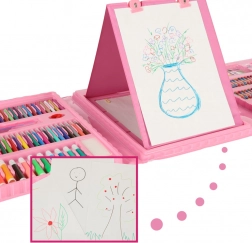 Ez a rózsaszín művészeti készlet ideális gyerekek és felnőttek számára is, akik szeretnék fejleszteni kreativitásukat. A készlet széles színpalettát és művészeti eszközöket tartalmaz, amelyeket áttekinthető összehajtható dobozba rendeztek, így könnyen hordozható.
