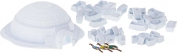 Az interaktív játékkészlet fehér igluja egymáshoz kapcsolódó műanyag blokkokból áll, ami ötletes összeállítást és kreatív játékot tesz lehetővé.