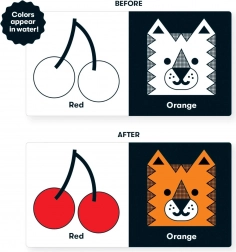 A Mudpuppy varázslatos fürdőolvasmánya minden fürdést örömteli felfedezéssé változtat. Elég a könyvet a vízbe meríteni, és a fekete-fehér illusztrációk ragyogó, színes képekké alakulnak. A gyerekek játékosan tanulják a színeket, észreveszik a víz által okozott változásokat.