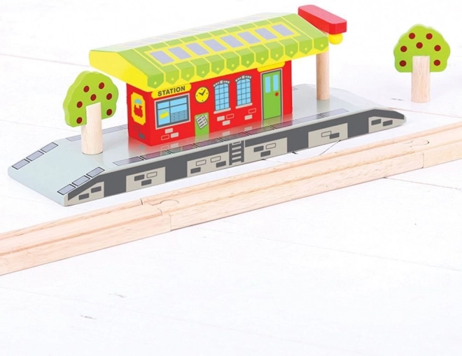 Az állomás minőségi, felelősen beszerzett fából készült, és megfelel a hatályos európai biztonsági szabványoknak. A világos színek és a letisztult vonalak barátságos hangulatot teremtenek a kis utasok számára.