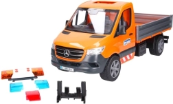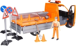 A még nagyobb realizmus érdekében a jármű fény- és hangeffektes jelzőfénnyel van felszerelve (az elemek mellékelve). A csomag tartalmaz egy mozgatható végtagú útkarbantartó figurát, közúti táblákat, bójákat, síneket és szerszámokat. A robusztus ABS műanyag kivitel bírja az intenzív játékot otthon és a szabadban is.