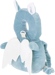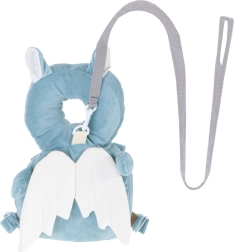 A hátizsák aranyos állatka formájú, fehér szárnyakkal, mely optimális védelmet nyújt a gyerekeknek az első lépések próbálkozásakor és véd a sérülésektől esés esetén. Puha és könnyű poliészter anyagának köszönhetően a hátizsák nagyon kényelmes, és a gyermek szinte észre sem veszi.