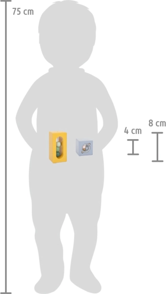 Egyes kockák tükröket, csörgőket és rázókat tartalmaznak, ami új érzékeléseket és a hallási és vizuális készségek fejlesztését biztosítja.