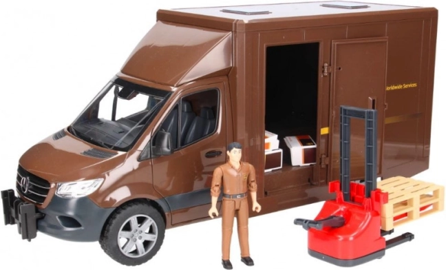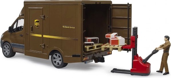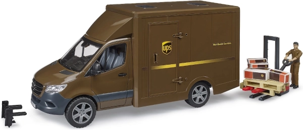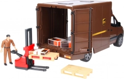 A UPS Bruder MB Sprinter szállítójármű figurával és tartozékokkal végtelen szórakozási lehetőségeket nyújt a kidolgozott dizájn és funkcionalitás révén. Az 1:16 méretarányú modell kiváló minőségű anyagokból készült, és valósághű játékélményt biztosít.