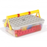 Minden elemet elhelyezhet a masszív, fogantyús dobozban. A perforált fedél építési felületként szolgál – ideális otthonra és utazáshoz is.